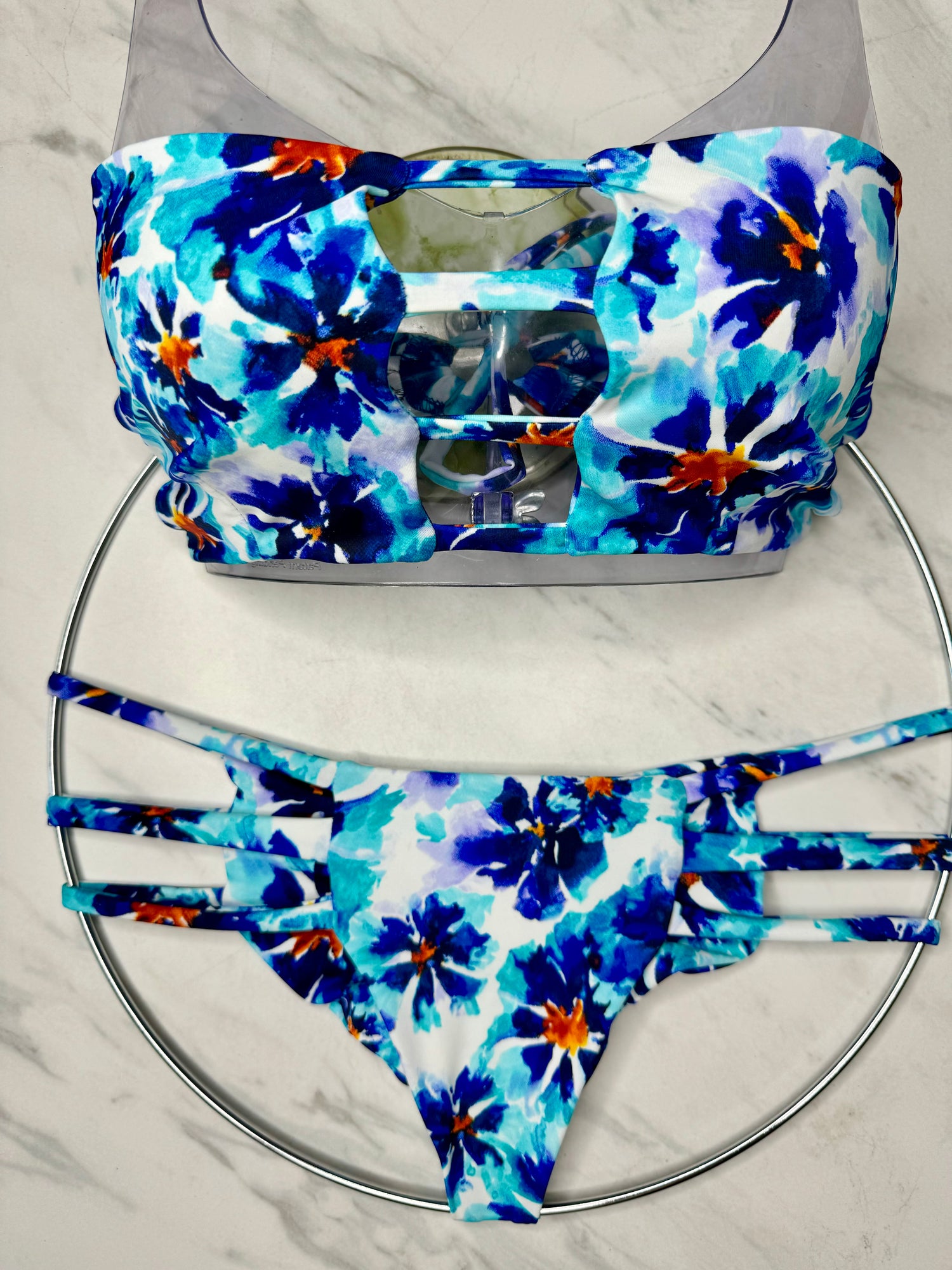 Achieve beach perfection in this blue floral seamless bikini bottom. Crafted from premium fabrics for optimal comfort and style, turn heads and make a statement. Feel confident and stylish all summer long!