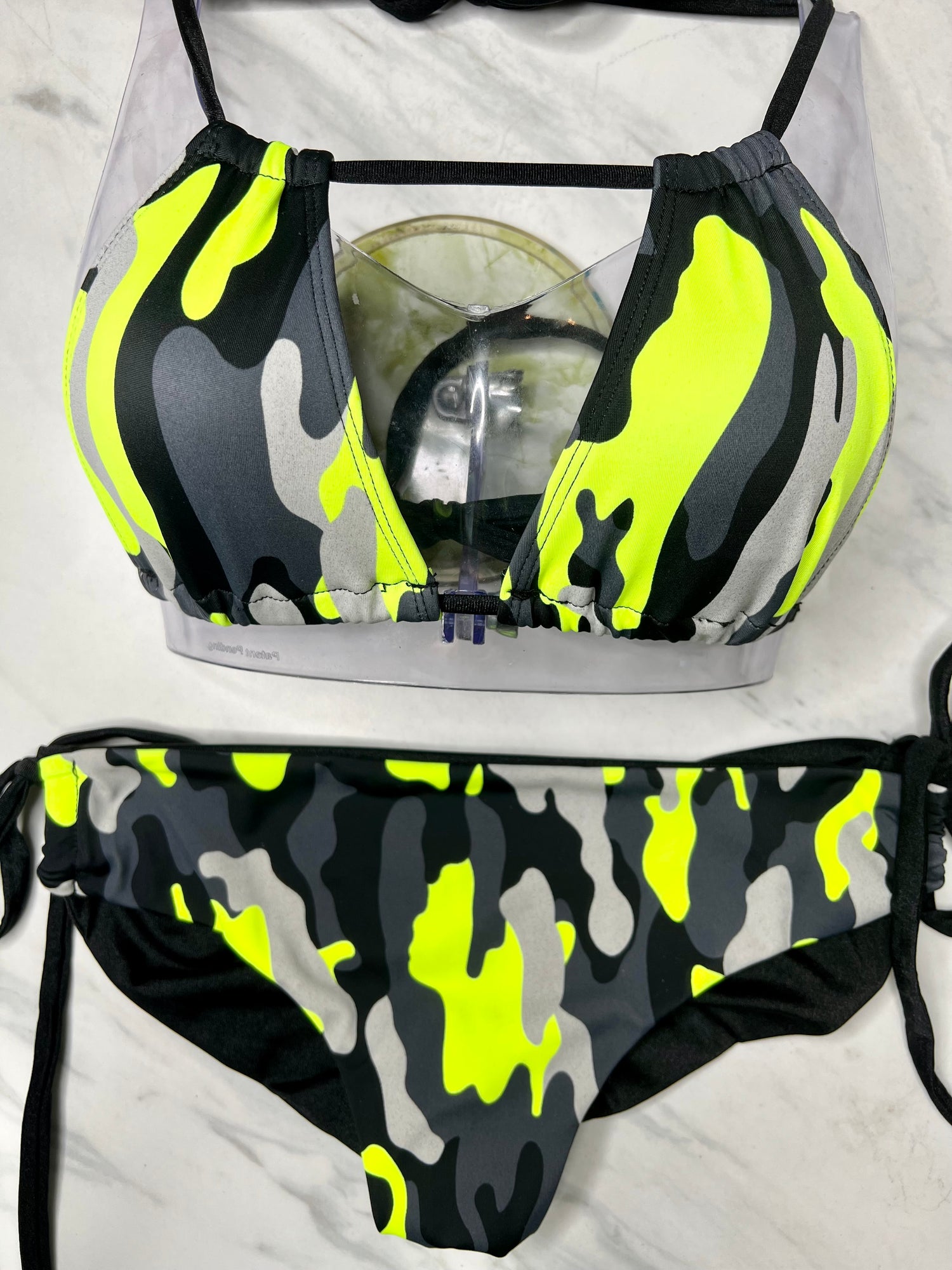 This Camouflage Convertible Top is guaranteed to turn heads! Look sizzling in neon camouflage while you enjoy the sun in style. Make a statement and have some fun with this unique convertible bikini top.