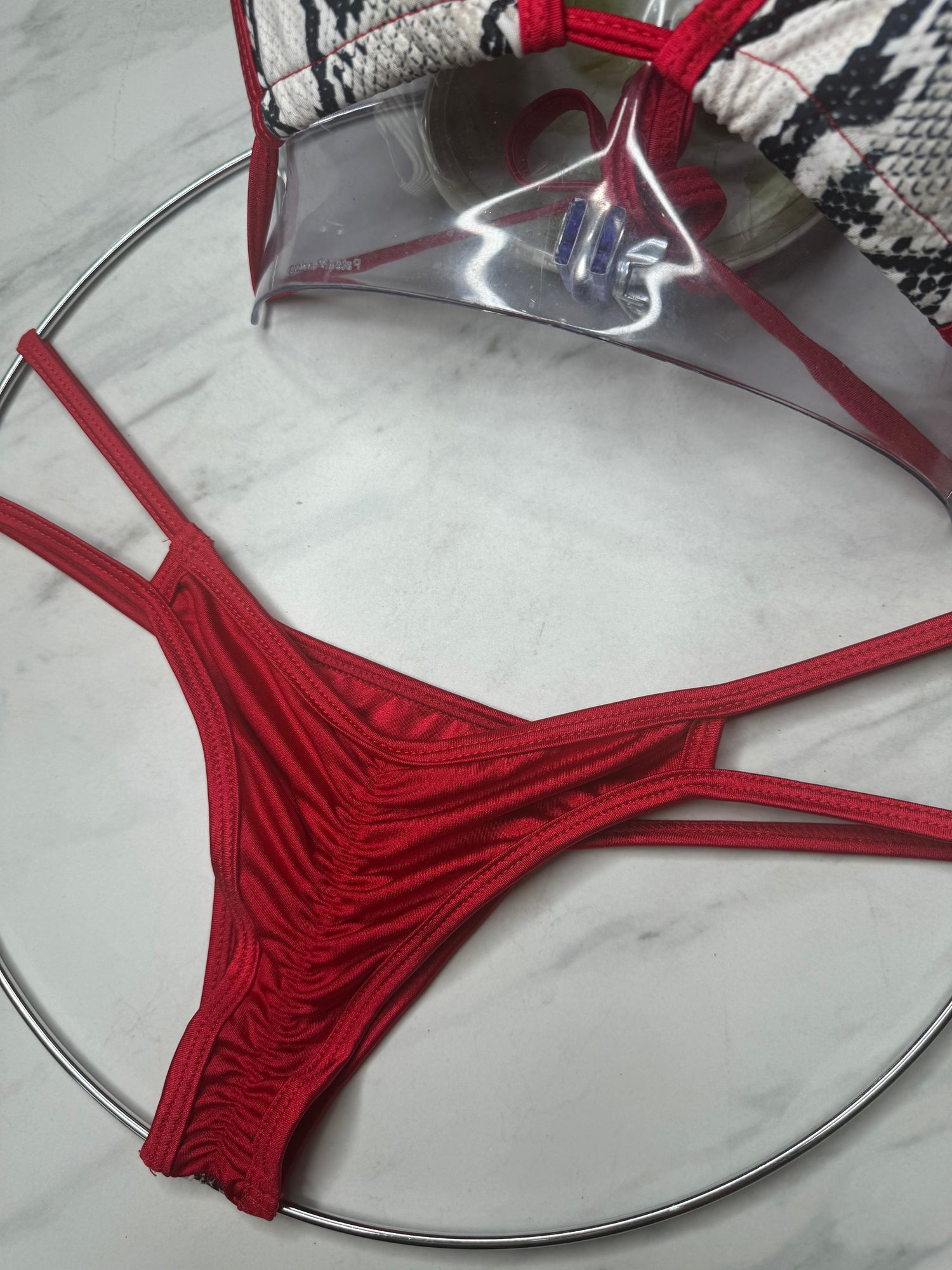 Unleash your wild side with our Cobra Bottom! Designed with a fierce cobra print and a flattering micro cut, this bikini bottom will make you feel confident and unstoppable. The red trim adds a pop of color and boldness. Dive into adventure with our Cobra Bottom!
