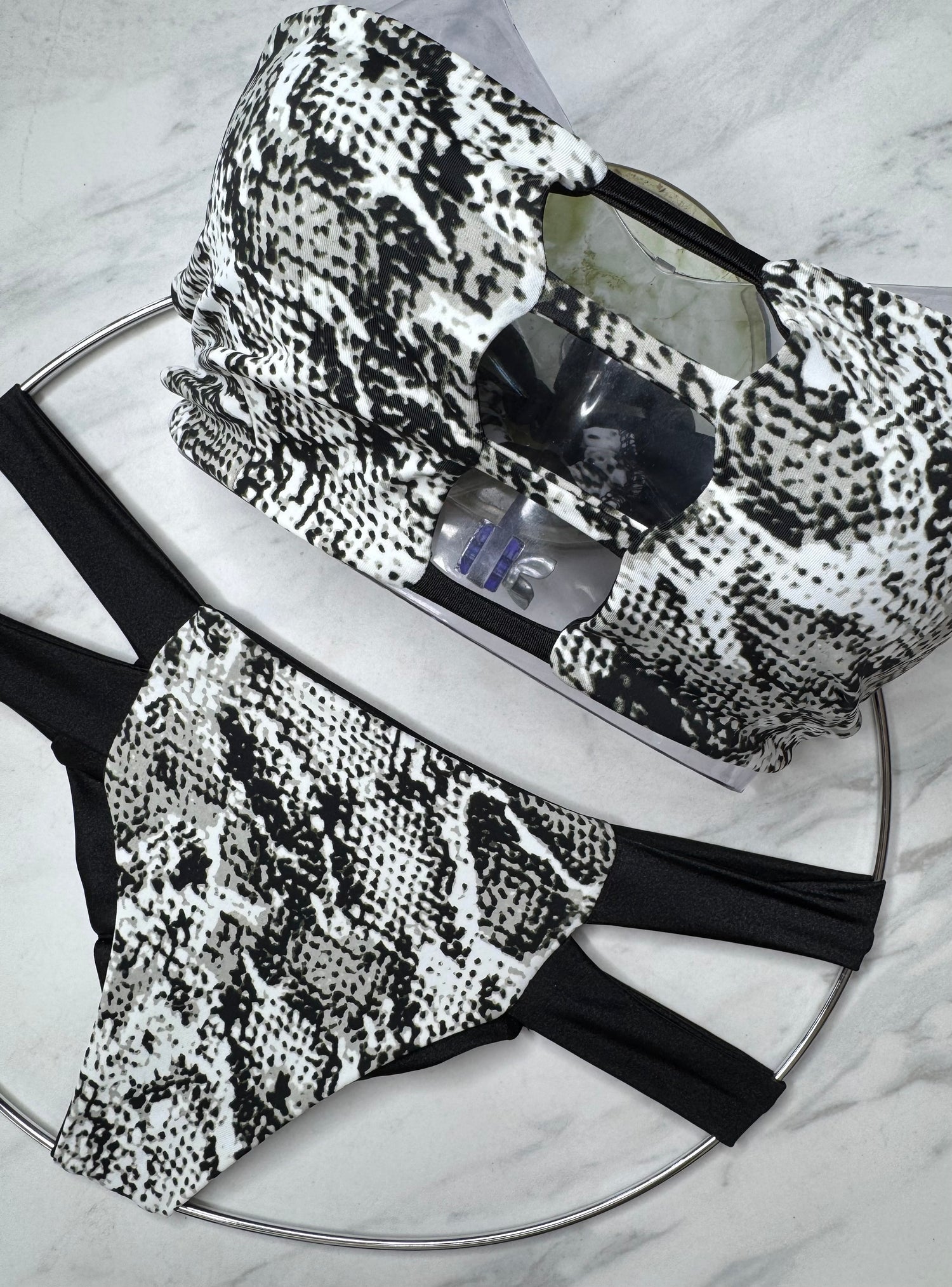 Get ready to turn heads with our top selling Snakeprint Bandeau Top! Perfect for a day at the beach, this bikini top features a stylish snake print design and black strings for a touch of contrast. Stand out from the crowd and make a statement with this must-have piece.